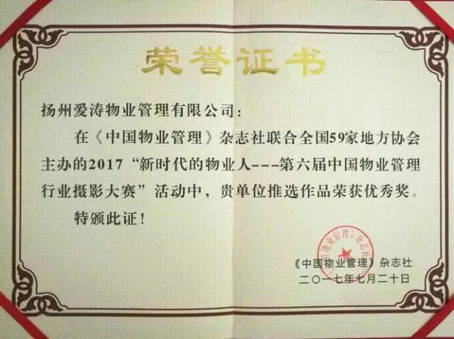 我司喜獲中國物業(yè)管理行業(yè)攝影大賽優(yōu)秀獎